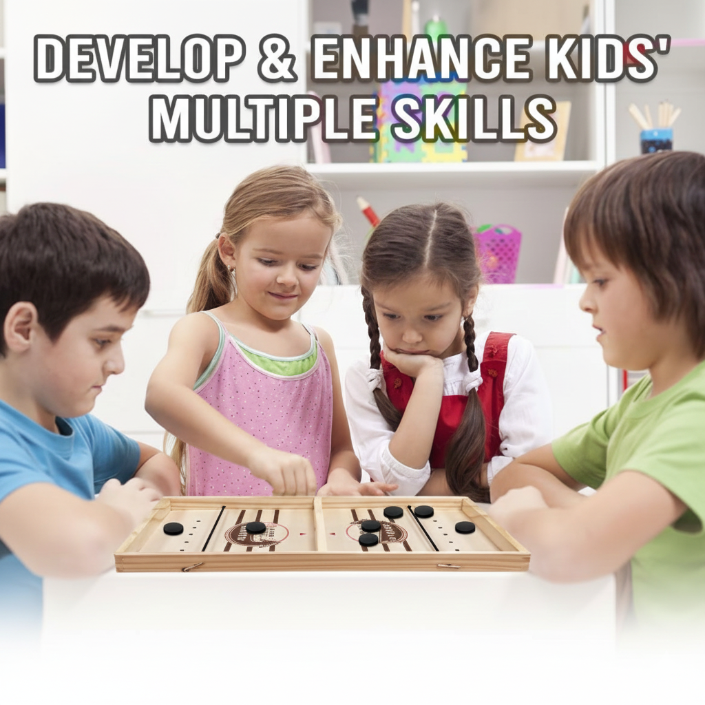 Built with a solid wooden board and sturdy pucks designed to handle long-term play. -