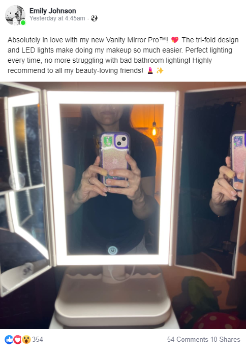 LumiFold™ combines studio-quality LED lighting, multiple magnification levels (1X, 2X, 3X & 10X), and a foldable trifold design. It’s designed to give you flawless lighting and precision that regular mirrors simply can’t offer.
